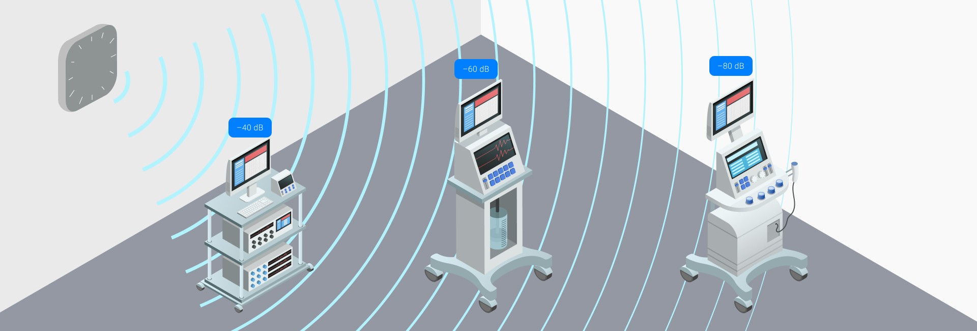 Здесь «уровень шума» — это фоновое электромагнитное «засорение», а коэффициент калибровки корректирует расчёты под конкретное оборудование. Поскольку устройства разных производителей могут по-разному интерпретировать RSSI, шкала измерения может отличаться. Типичный диапазон рабочих значений — примерно от –80 дБ до –30 дБ (минимальный уровень — когда устройство очень близко к передатчику).