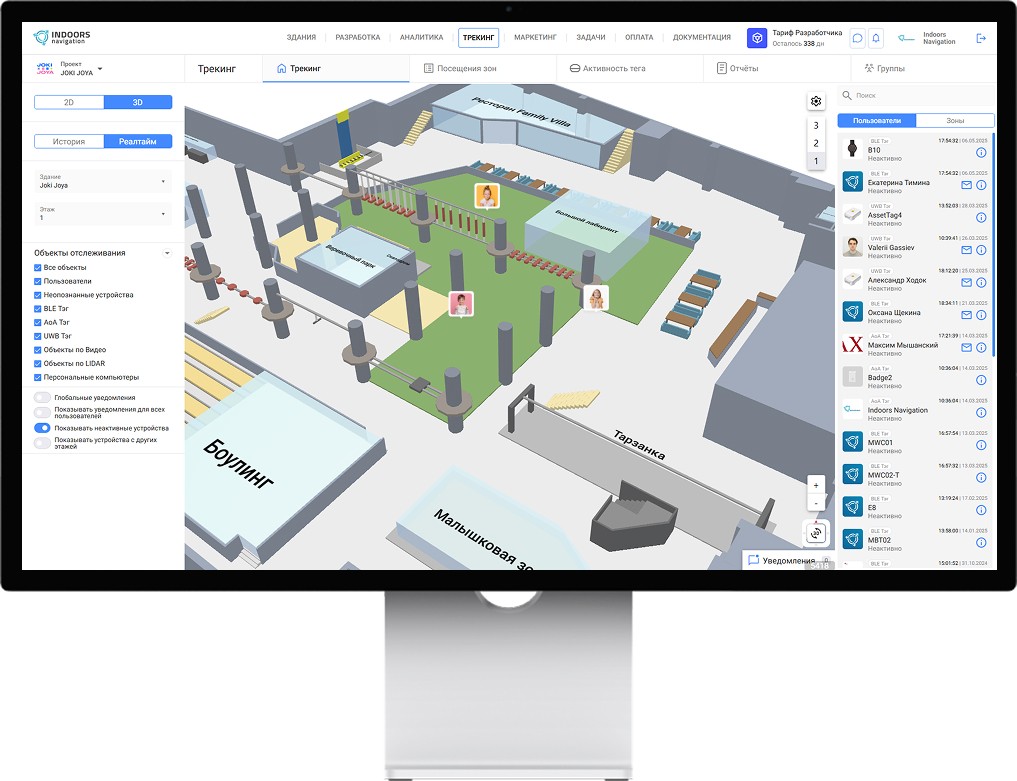 Комплексная система отслеживания перемещений детей в парке развлечений с интерактивной 3Д картой для интеграции в сайт и мобильное приложение.