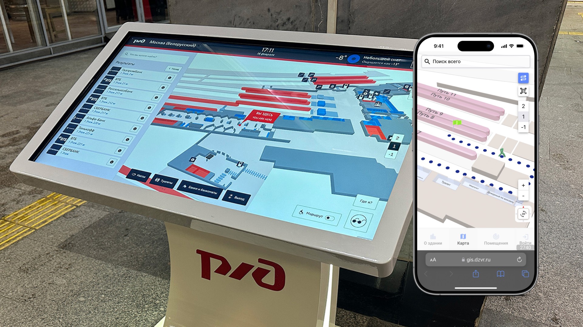 Интерактивные терминалы на вокзалах РЖД 2024 Дирекция Железнодорожных Вокзалов (ДЖВ) совместно с компанией Индорс Навигейшн внедрила дополнительный сервис — интерактивные терминалы с 3D-картами на 15 вокзалах РЖД